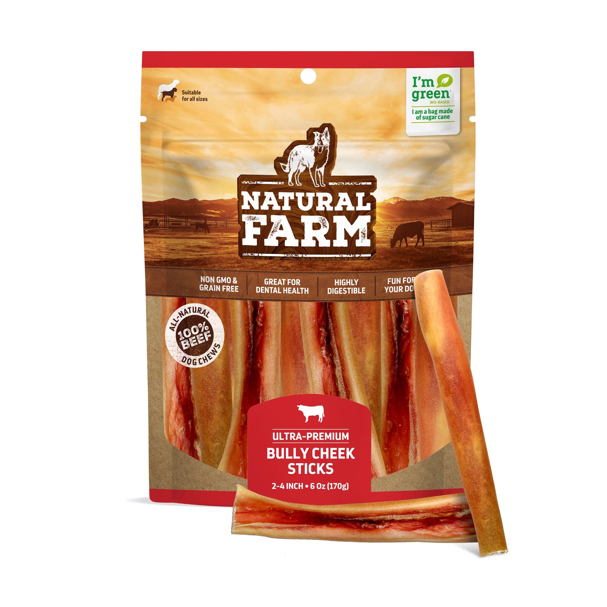 Bully Cheek Sticks are everything you desire from traditional bully sticks & more: Made with all-natural beef cheek muscle sourced from premium, grass-fed cattle, this exciting new product behaves very similarly to traditional bully sticks in form, function, flavor, and nutritional value. They’re long-lasting, protein-packed, and rich in savory beef flavor. They’re also more readily available when it comes to raw material, so that means they’re more cost effective, too! It’s the best bully stick alternative out there, and we can’t wait for dogs to get their paws on them! Free of grains, chemicals, hormones & antibiotics. Perfect for medium chewers. Recommended for small to medium breeds.