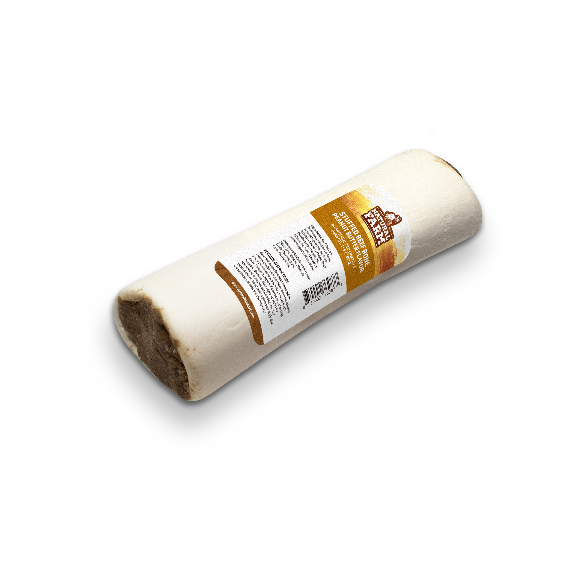 Dogs go nuts for peanut butter, and our Peanut Butter Filled Bones are no exception! As dogs work to lap up every ounce of peanut butter, they also enjoy a dental cleaning with a side of calcium for stronger, cleaner teeth. Calcium also benefits your dog’s brain, bones, and muscles. Filled bones benefit your dog’s mood by providing them with a positive outlet for stress. Dual textures create added excitement, and because they’re Natural Farm, they contain no harmful additives, hormones, or artificial flavors or colors. Best for medium to large dogs.