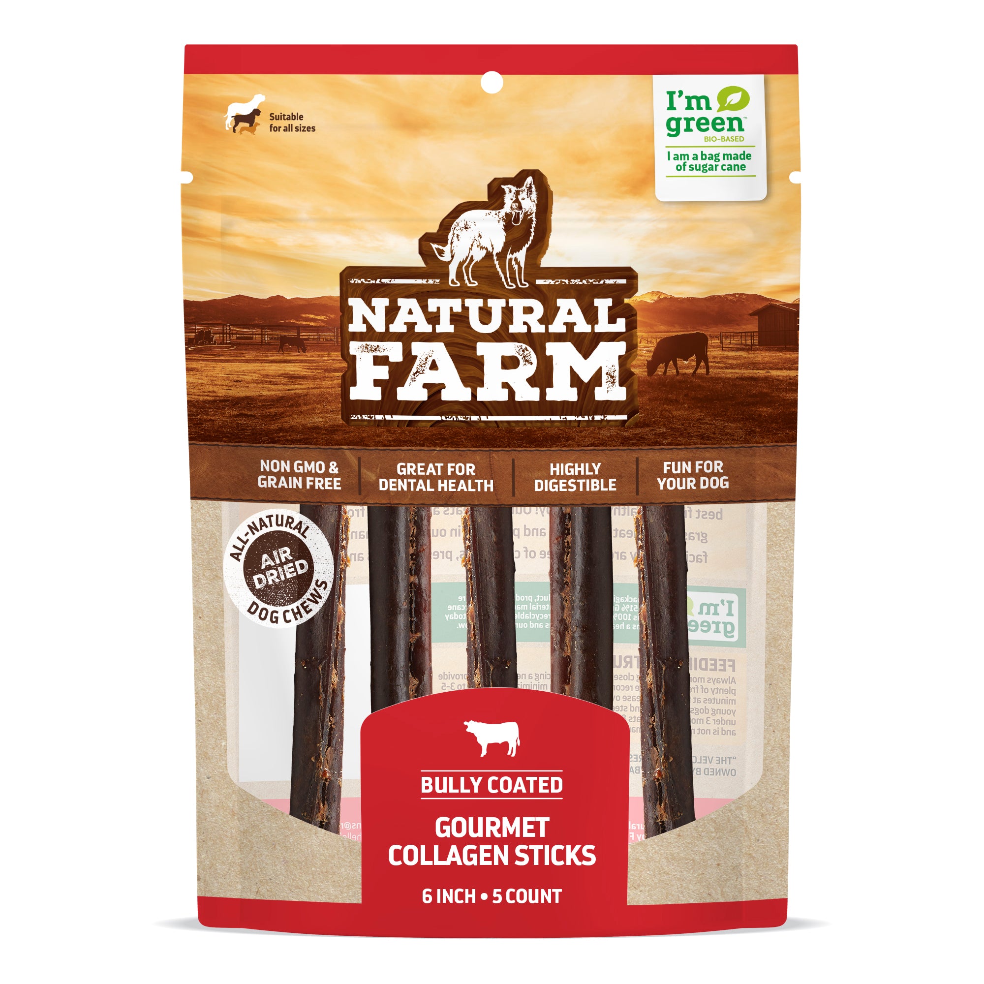Your dog’s favorite chew treats just got tastier: Natural Farm’s 6-Inch Beef Flavor Gourmet Collagen Sticks are coated in decadent, all-natural beef for an exceptional chew experience that’s even more flavorful. Each stick contains 95% collagen and premium quality beef for wholesome, long-lasting fun and real beef flavor. A rich source of amino acids for brain health, bone density, healthy coat, and joint support. Our highly digestible Collagen Sticks are a better, safer alternative to traditional rawhide and made from free-range, grass-fed, all-natural beef without any chemicals, additives, hormones, or antibiotics. Ideal for medium & heavy chewers.