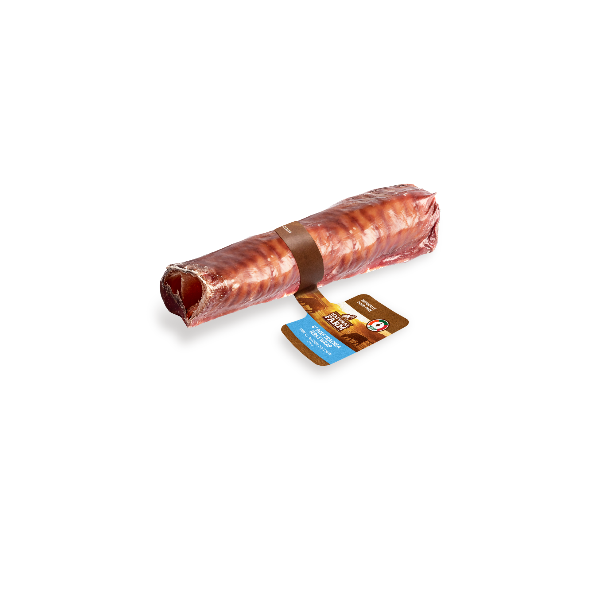Your dog will get wrapped up in wholesome bliss as they indulge in our Jerky Wrapped Beef Trachea. Wrapped for added enjoyment, engagement, and enrichment, these all-natural chews provide mental stimulation, savory beef flavor, and loads of glucosamine & chondroitin for exceptional joint support. They also naturally promote cleaner teeth as your dog chews on them! Great for light and medium chewers, senior dogs, and puppies. From premium, free-range, grass-fed beef. Grain-free, chemical-free, and hormone-free. Delectable, all-natural goodness for your good pup.