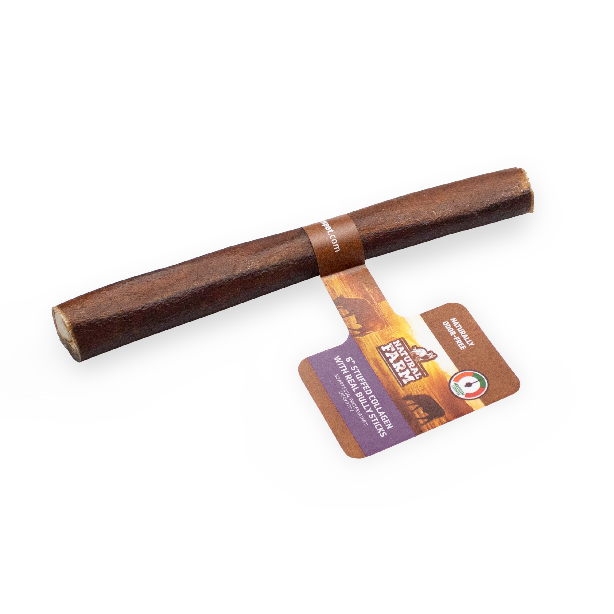 Our Bully Stick Stuffed Collagen Sticks combine dogs’ two favorite flavors to create the ultimate chew full of indulgent enrichment. Two textures offer long-lasting enjoyment and tons of mental stimulation. They’re also packed with protein and collagen, offering dogs well-rounded skin, coat, joint, and muscle health. Formulated with all-natural, limited ingredients from grass-fed, free-range beef that’s free of chemicals, hormones, and antibiotics. Perfect for medium chewers.