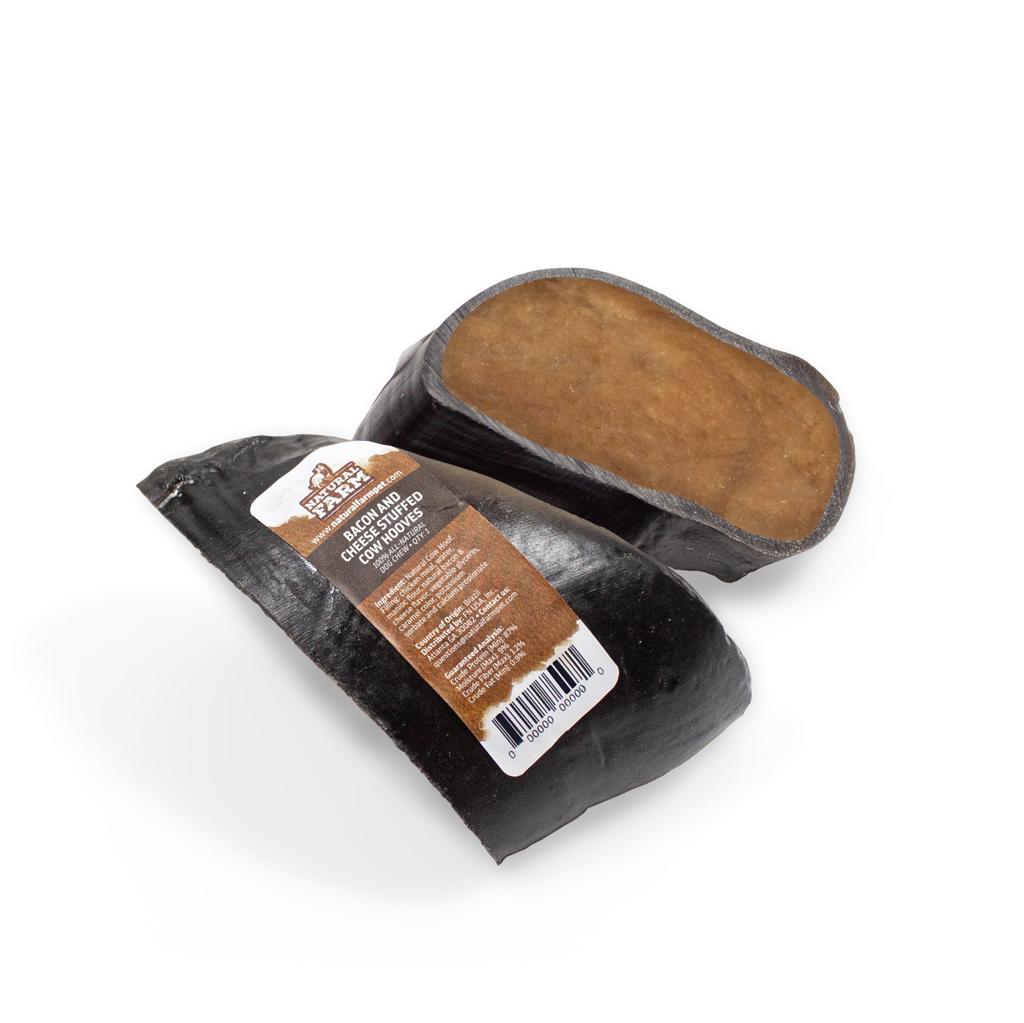 Our delightfully dual textured Bacon & Cheese Stuffed Cow Hooves offer your dog an outrageously scrumptious, long-lasting, and engaging gnawing experience that they’ll go crazy for! The all-natural, clean ingredient stuffing provides irresistible flavor and protein for endless enjoyment and delicious enrichment. The hooves naturally scrub away plaque & tartar as your pup gnaws for cleaner, stronger, and all-around healthier teeth. Sourced from premium, ethically raised, grass-fed, grass-finished Brazilian cattle and completely free of grains, hormones & chemicals. Recommended for medium chewers.