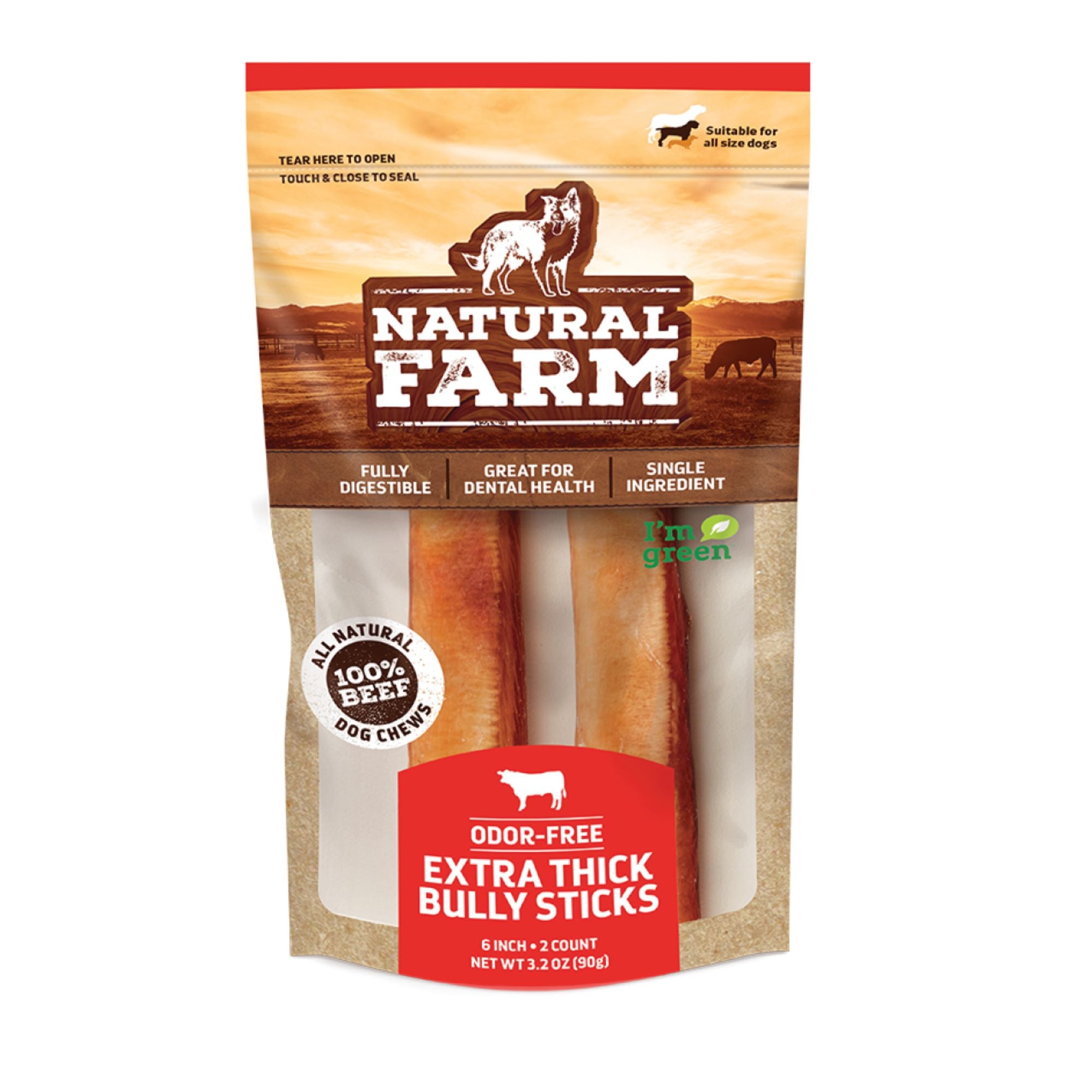 A naturally exciting and healthy dog chew treat! Fully digestible and highly engaging, Natural Farm’s 6 Inch Bully Sticks provide dogs with an outlet for excess energy and a boost of amino acids for a brilliant coat, mind, and body. Long-lasting and delicious. A great way to keep any dogs busy and support dental health. Natural fun without unnatural ingredients like chemicals, preservatives, and additives. And we only use grass-fed and -finished, hormone-free, free-range beef.